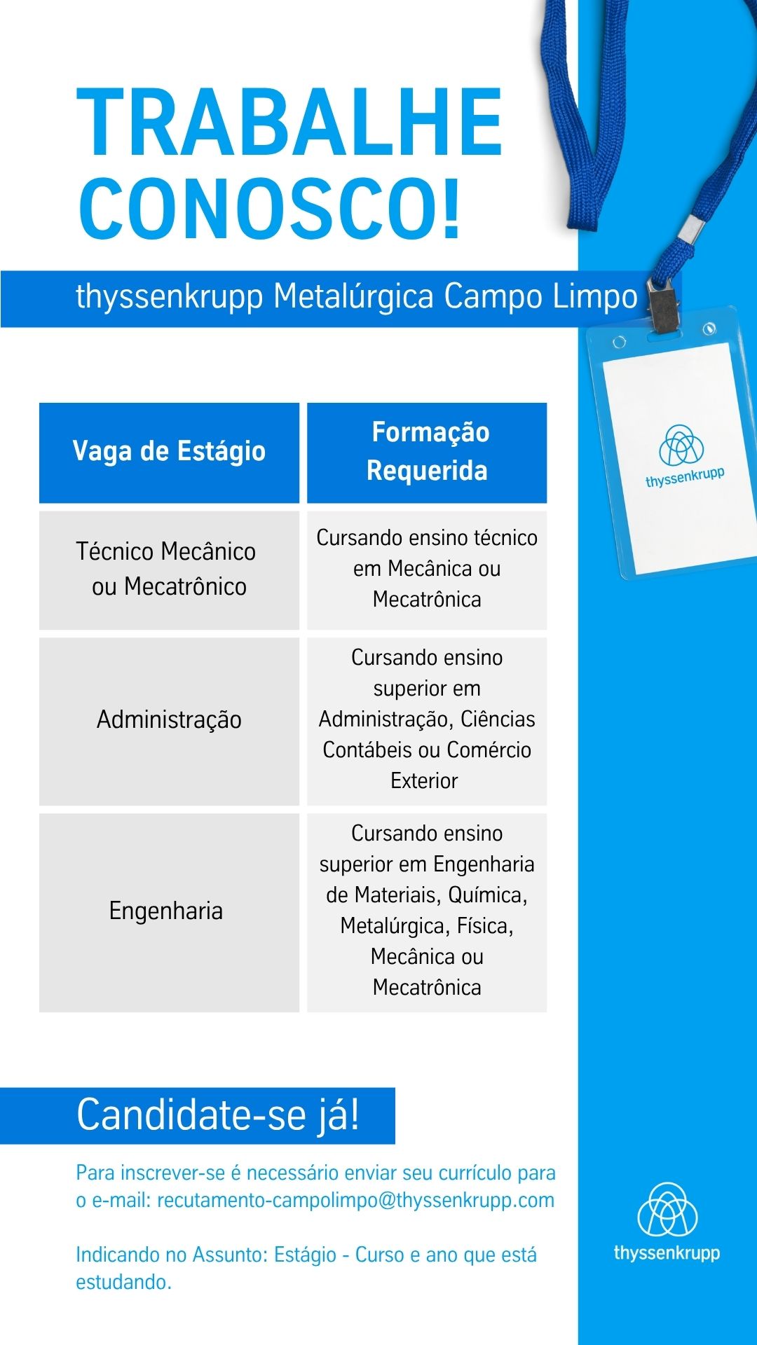 THYSSENKRUPP – Oportunidade de Estágio – Engenharias